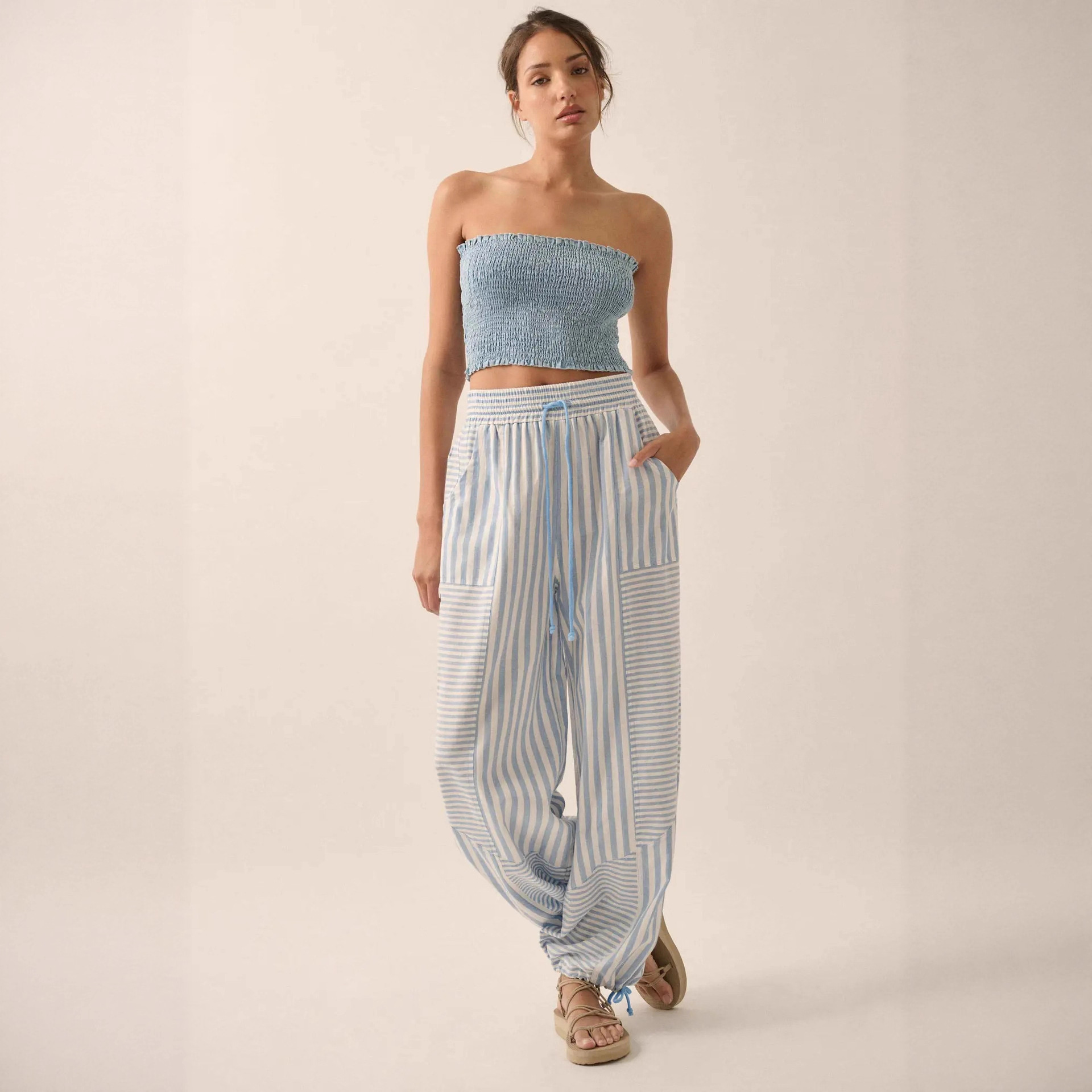 Best-Selling Casual Beach Pants: Breathable, Full-Length Trousers with Drawstring Waist, Pockets, and Striped Print